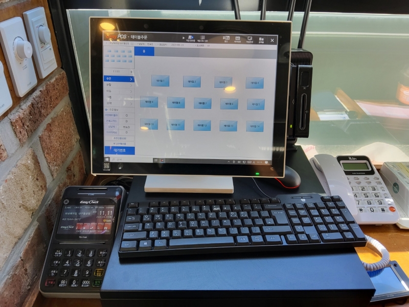 설치장비: 계산포스1대, 주문포스1대, 주방프린터2대, 테이블오더