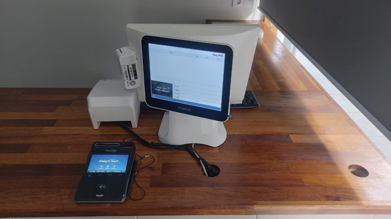 설치장비: APEXA-G(계산포스, 듀얼모니터, EP-705 서명패드)